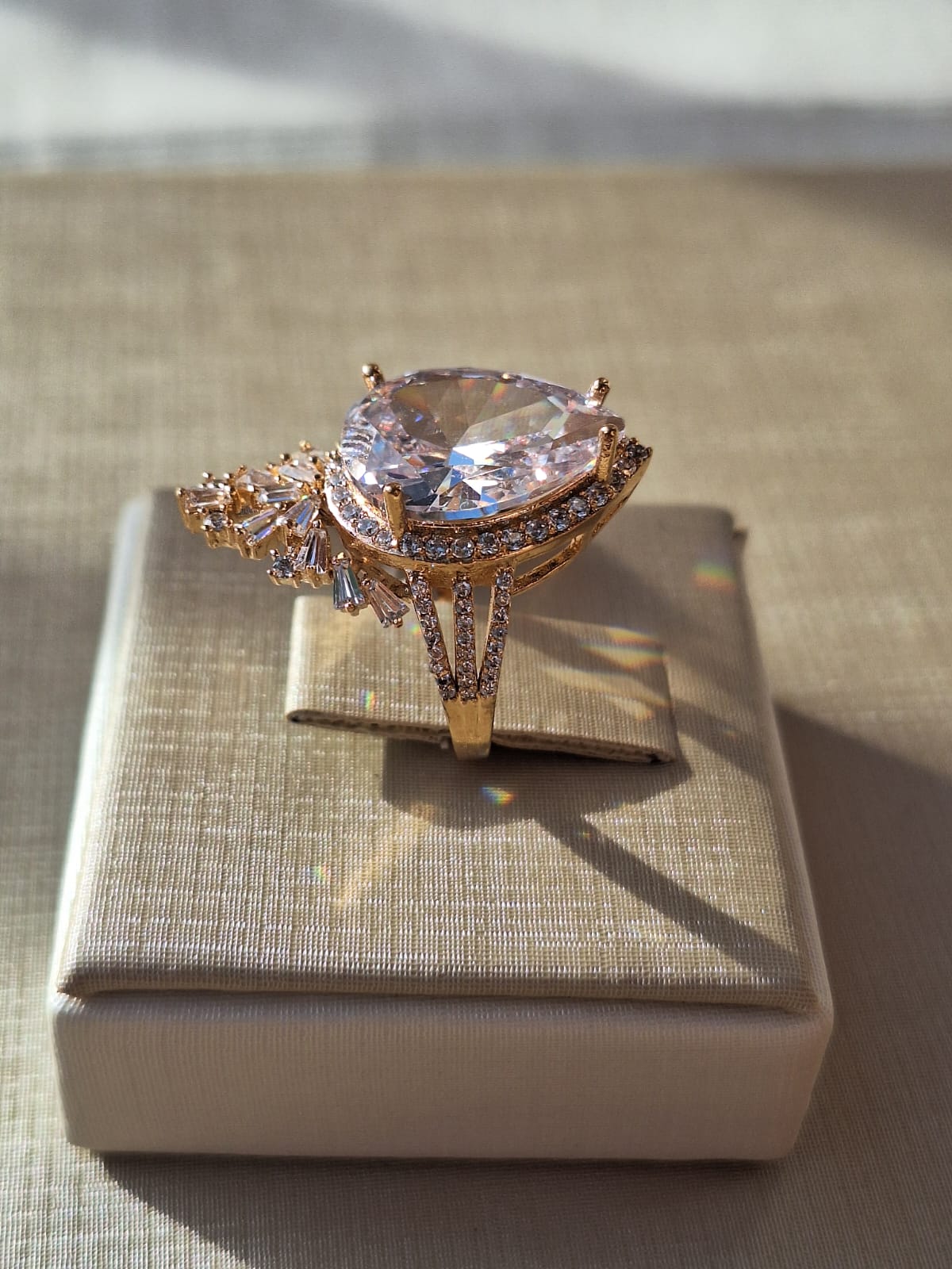 Este anel magnífico combina um design sofisticado com a elegância de uma gota adornada por uma coroa de zircônias brilhantes. A forma única e a disposição das pedras criam um efeito de luz deslumbrante, tornando-o uma peça statement perfeita para qualquer ocasião.